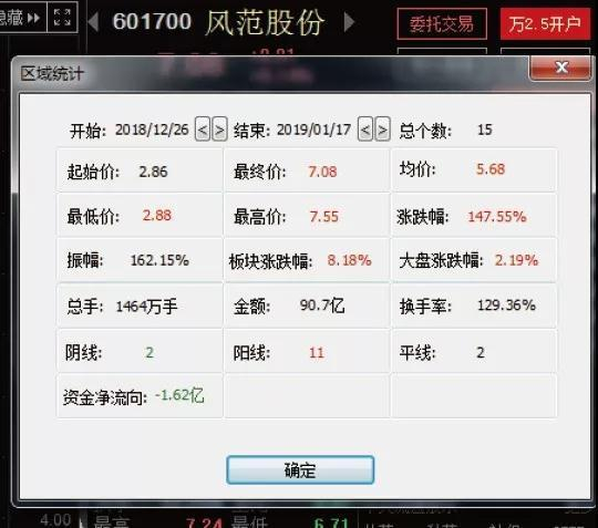 自2018年12月26日以来的15个交易日内,风范股份累计涨幅达到147.55%,换手率为125.36%。其中在2018年12月26日-2019年1月10日的10个交易内,风范股份更是收获10连板,累计涨幅超过160%。