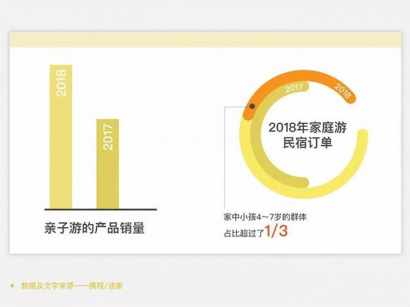 携程方面也表示,2018年亲子游的产品销量同比增长了42%;而全球公寓民宿预订平台途家的数据显示,2018年家庭游民宿订单是17年的2倍多,其中家中小孩4—7岁的群体占比超过了1/3。