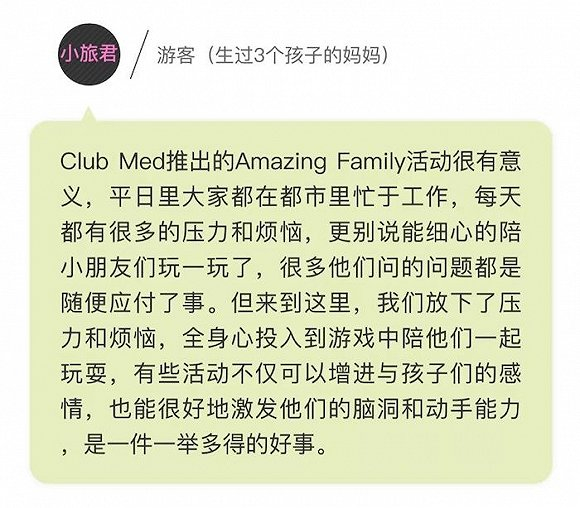 如果要想更好的改进项目中的活动,及时获取参与者的反馈是必不可少的。Club Med在这两点上也算完成的不错,推出的适合2—3周岁宝贝的“小小俱乐部(Petit Club Med)”活动,并且利用评论机制及时获取到家长们的意见和建议。