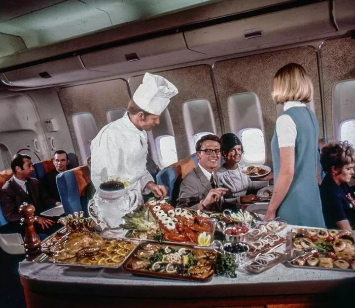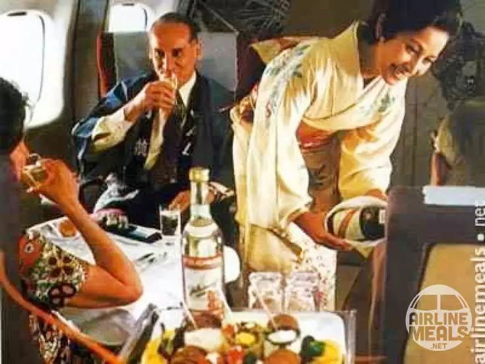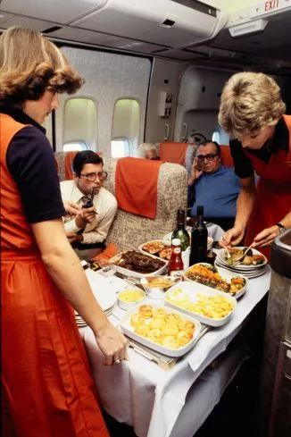 如今,很难想象40年前的飞机餐就是一块面包和一杯茶水。