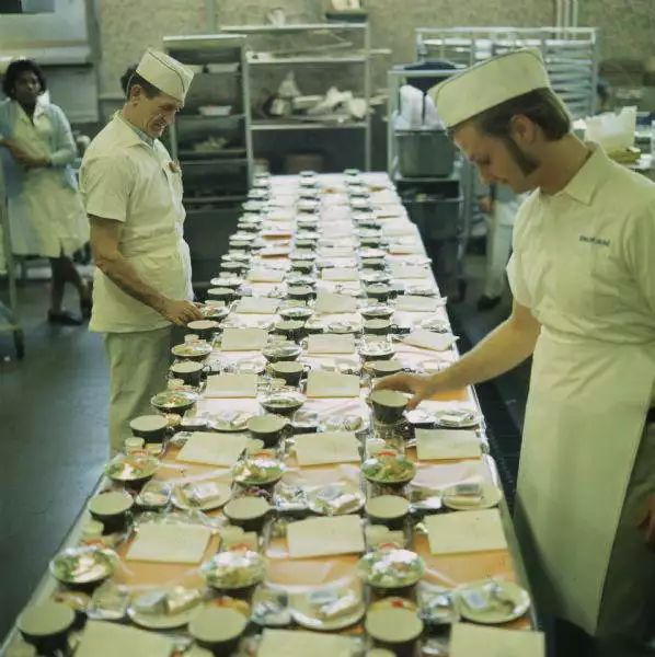 在改革开放之前,中国民航的机上餐饮服务近乎于大食堂水平,作为中国的门户--首都机场飞机餐也像食堂的伙食一样,由北京管理局下属配餐间负责,30多名配餐人员,他们当年骑着自行车,提着食盒,里面装的午餐肉或凤尾鱼罐头、水果、饼干之类的送上飞机。