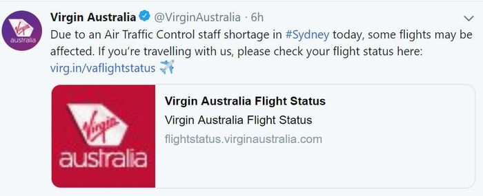 维珍澳洲航空在一份声明中表示,“受悉尼机场空管人手短缺影响,今天所有航司的航班受到影响。我们已经通知乘客他们今天的航班可能会延误,或者是更改。建议旅客前往机场前查询航班动态。”