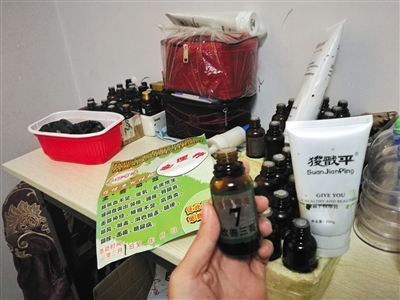 1月17日,北京大兴一家理疗店内的华林酸碱平DDS精油。