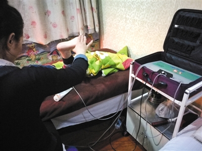 “只要把风疏通出去,经络打通,什么病都能给你调理。”女技师介绍,自己的妹妹去年曾被诊断为乳腺癌且癌细胞已开始扩散,准备手术时被她阻止,坚持用电疗给妹妹调理了一周。“一个星期后去检查,医生说不用做手术了。我又给她调了一个月,都好了,现在她也开店做这个。”