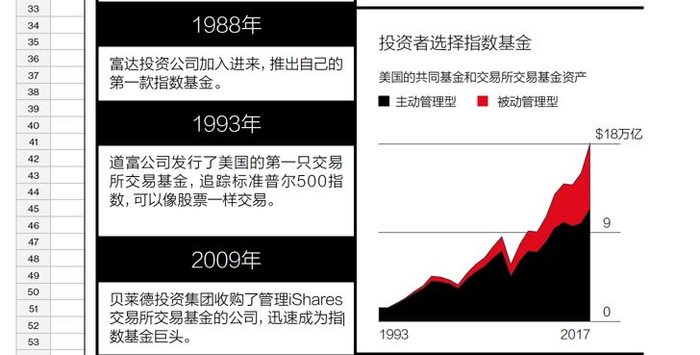 指数投资成为新宠,在美国不算是新鲜事儿。2018年以来,超过3万亿美元流入这类产品,被动型管理基金在美国股票基金资产中所占比重,达到近40%水平,较10年前几乎翻了一倍。