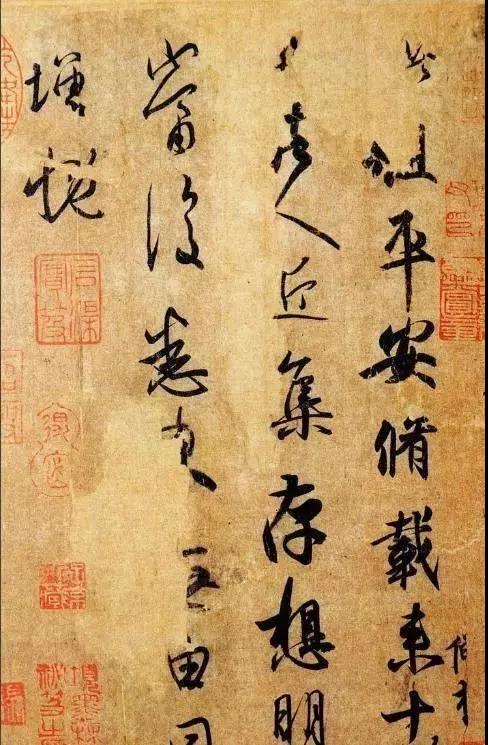 于1283年得到此卷,宣称他查到宣和小玺和宋徽宗(约1100-1126)天水圆印还能看见。张晏于1301年从鲜于家族那得到此卷,他记录了宣和小玺和题记被笨拙地裁切掉,独把偏爱的天水圆印留下。如果这个关于印的证据无误的话,则可证明它曾著录于《宣和书谱》中。上面还有两方明显的印,让人联想起高宗朝(约1127-1162)