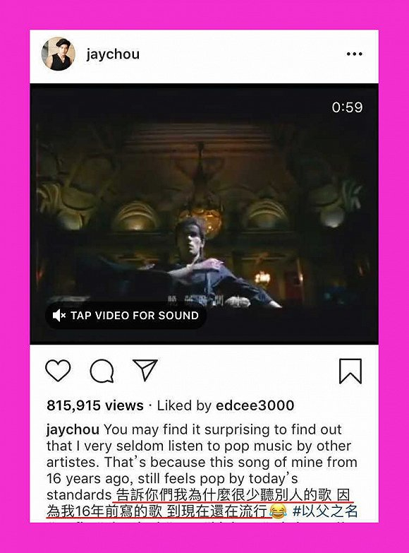 前段时间,周杰伦因为这条动态,又掀起了一波回忆杀。▼