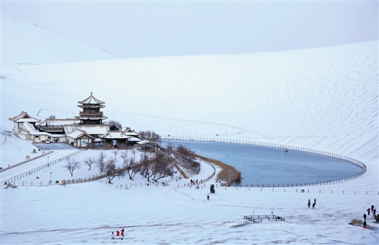 冬天冰雪下的敦煌鸣沙山月牙泉 张晓亮 摄