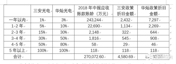 二是坏账准备计提政策。三安光电的坏账准备政策也是无比宽松。如果按照华灿的坏账政策,三安光电需要多计提约7000万坏账准备。如果看澳洋及乾照的坏账政策,三安需要计提的更多。