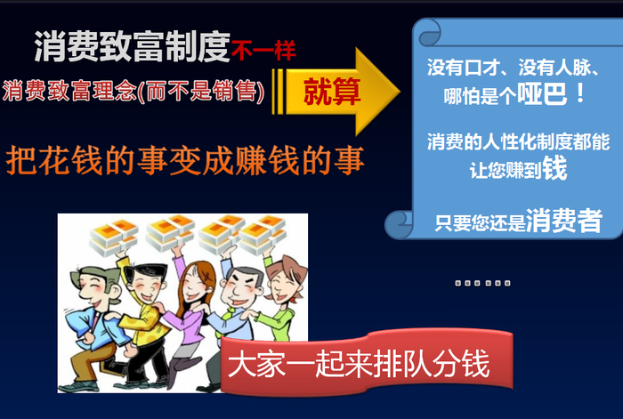 许多人加入三生都是被“排队赚钱”所吸引,即所谓消费致富,“把消费者变成消费商!”。