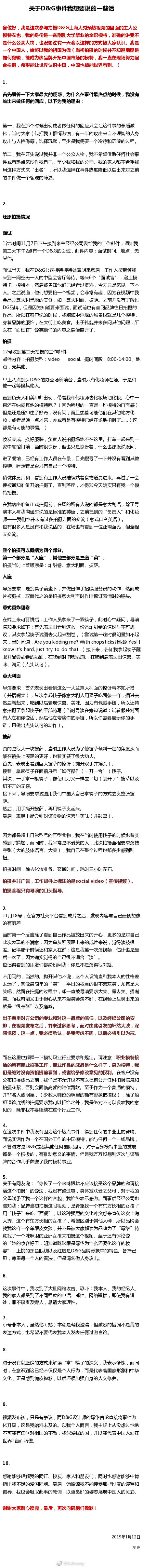 时隔两月,Dolce & Gabbana的争议广告女主角发声:这次合作几乎断送了模特事业