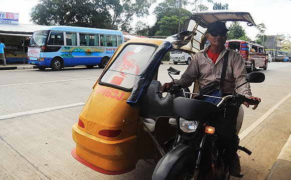 三轮摩托车是岛上的主要出行方式之一,当地人叫它“tutu”,有各种各样的颜色。由于大型交通工具稀少,岛上没有加油站,许多沿街店铺出售瓶装汽油。