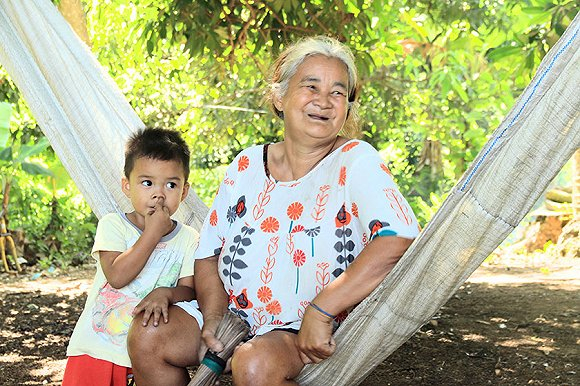 这是在岛上看到的一处人家,奶奶正带着孙子坐在芒果树下的吊床上,旁边有只小黑狗欢实地跑来跑去。芒果树高及屋顶,看起来至少有十几年的树龄了。高高的枝丫上挂满了用报纸包起来的果实,偶尔还能从报纸破损处瞥见一抹青色。芒果树结果后,这里的人们会用报纸将果实包起来,防止虫害,一直到它们瓜熟蒂落。