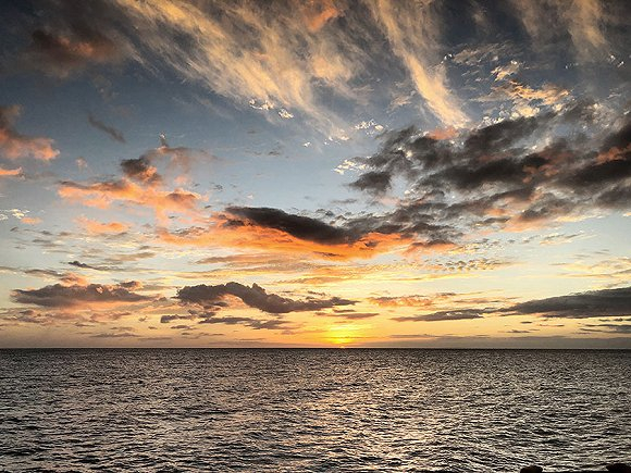尽管在海滩上拍出的日落照片也很美,但是在海上,你便会觉得,那太阳似乎离你更近了,整个天空就像一张被泼洒了颜料的画布。日落的速度非常快,可能就那么几十秒。我们一群人,用迅雷不及掩耳盗铃之势操起各种设备,拍落日,拍落日和帆船,拍落日和自己,拍落日和各种可以一起拍的东西。