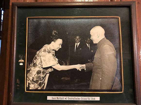 我还在照片中发现了洛佩斯夫妇分别单独和蒋介石的合影。洛佩斯在1949年初次出任菲律宾副总统,直到1953年。1965年,他再次当选为副总统并在1969年连任。只是不知墙上这些照片拍于何年何月,当时蒋公是否已经辗转至台湾。
