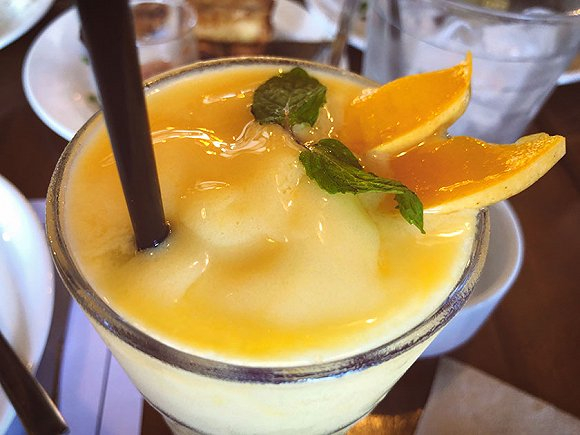 沿海滩边有许多两层的木结构小楼提供餐饮服务,二层多是半开放式设计。如果渴了、饿了,选一个拾阶而上,点上一杯当地超好喝的芒果奶昔,倚窗而坐,甜沁沁的冰爽直达心底。