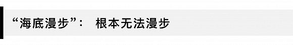 问题是,待在水下并没有事情可做。不能自由行走,因为连着头盔的供氧管道长度有限,走远了也不安全。海底光线不好,能见度很低,即便能看清,也没有什么可看的,既没有美丽的珊瑚也没有成群的热带鱼。而且因为海底温度很低,只一小会儿就冷到我胃疼,同屋的妹子第二天就开始感冒发烧。缺少美丽的背景加持,还戴着厚重的头盔,拍出来留念的照片真的只能用来留念,所以这里就没图了。