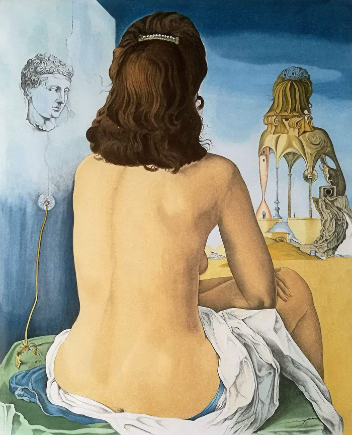 1945年达利以加拉背影创作出的《我赤裸的妻子看着她的身体》。