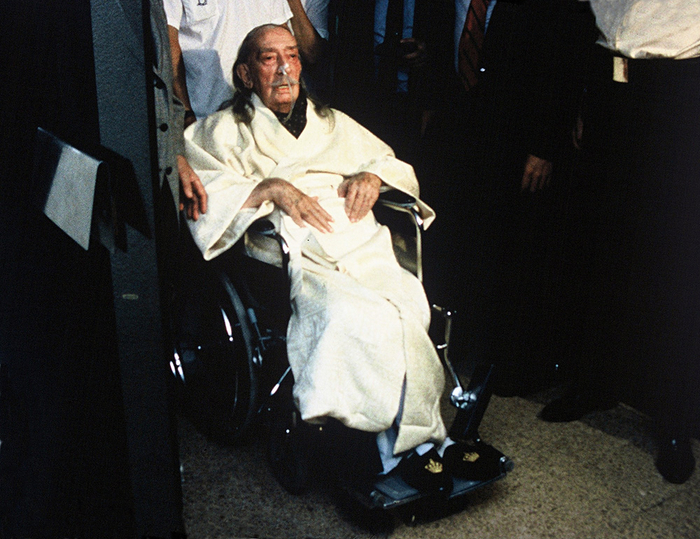 1986年,84岁的达利离开因火灾接受治疗的诊所。一年多前,他的卧室莫名起火。这张照片拍摄三年后,达利去世。从此,他和加拉的故事在人们的猜测和流言蜚语中流传。