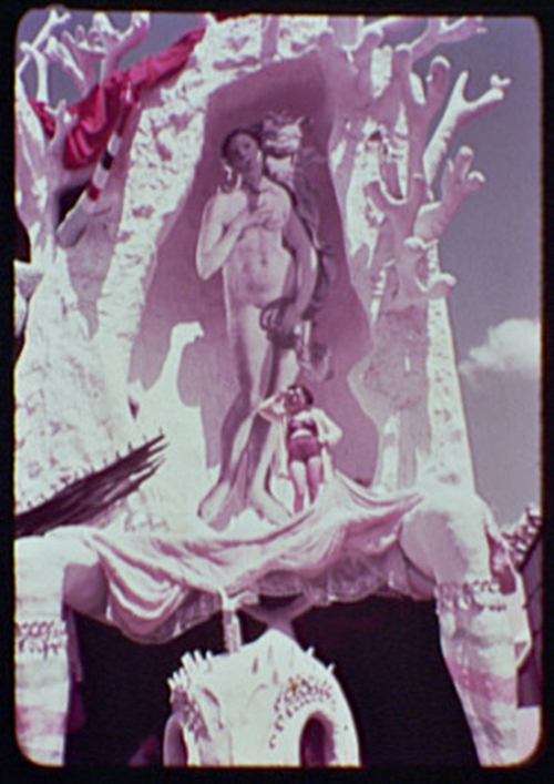 一张老照片重现了1939年的纽约世界博览会上,根据达利画作创作的《维纳斯之梦》(The Dream of Venus)亮相的一幕。整幢建筑的入口是女性的双腿,人们需从这里步入室内。加拉本可以做《维纳斯之梦》的模特,却选择了将功劳展现在作品之中——她与达利讨论着艺术创作,甚至还帮忙将各个部分组装起来。