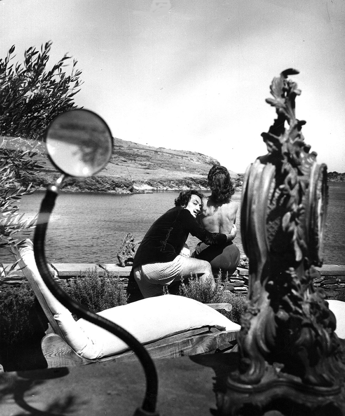 1955年,达利和加拉在西班牙布拉瓦海岸卡达克斯家中的花园中。