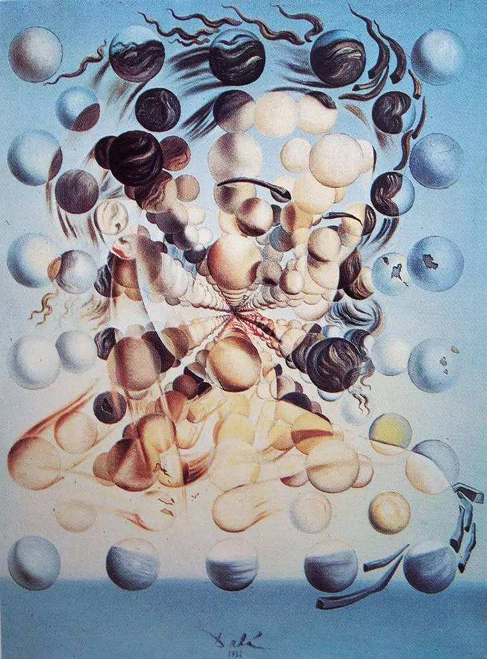 1952年,达利以原子概念为基础创作了加拉的肖像作品《Galatea of the Spheres》。