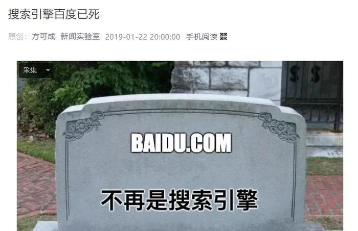 昨日晚间(1月22日),《搜索引擎百度已死》一文在朋友圈刷屏。