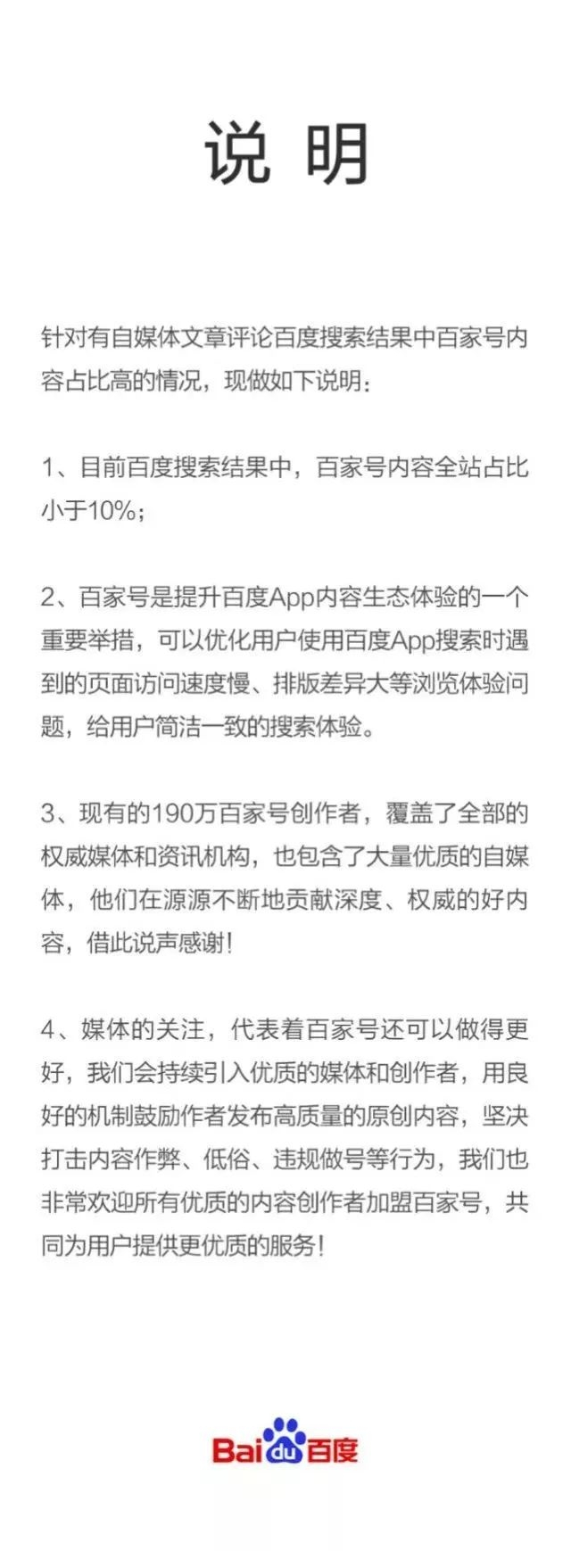 对此,百度回应称,百家号内容占比小于10%。