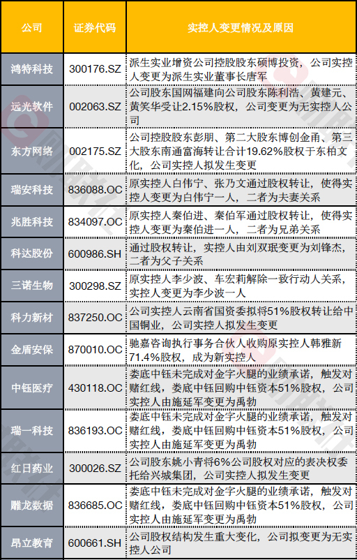 除了已经完成实控人变更的10家公司,还有3家A股上市公司和1家新三板公司在今年发布了实控人拟变更的公告。