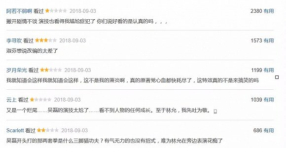网友们对《斗破苍穹》的指责主要集中在三个方面。其中一个,是演员的演技。邀请到饰演主角的吴磊虽然拥有着大量的女性粉丝,但是很难让所有的观众买账,剧中表现平庸引发了观众的不满。