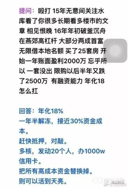 这次因为互联网普及,水库,北京大土豆这种网红的推动,大家都开始玩高杠杆游戏,首付贷,抵押贷用到极致的特别多,赌政策放松财务自由嘛。