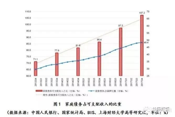 从统计数据看,到2017年4月的中国家庭债务与可支配收入之比高达107.2%,已超过美国水平,更逼近美国金融危机前峰值。