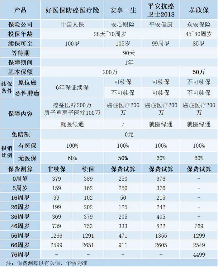 诺米挑选了几款关注度比较高的产品,和好医保防癌医疗险做个对比。