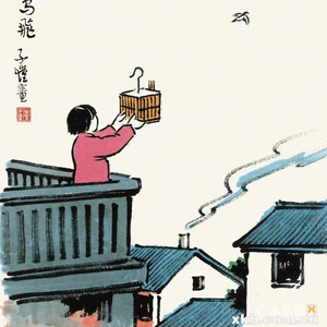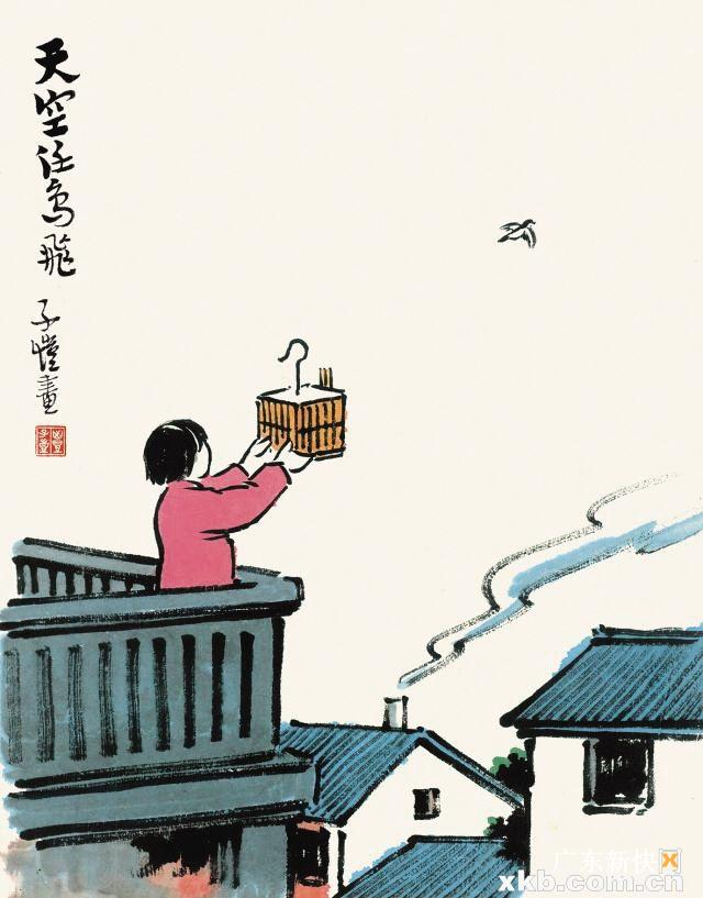 “言志”是要求“发乎情,止于礼”,诗人必须符合儒家思想的道德规范;“缘情”则诗人可以在诗中自由地抒发喜怒哀乐。无论是志、还是情,都发之于心,丰子恺说:“艺术不是技巧的事业,而是心灵的事业;不是世间事业的一部分,而是超越于世间之表的一种最高人类的活动。”他在《漫画创作二十年》中又说:“我觉得古人的诗词,全篇都可爱的极少。我所爱的,往往只是一篇中的一段,甚至一句。”“余每遇不朽之句,讽咏之不足,辙译之为画。”这些古人早已描绘好的名句,丰子恺以水墨线条融会西方的速写将诗意涉笔成趣,形成了既有写实性又有抒情性的绘画风格。“古诗新画”是丰子恺绘画艺术中最早创作的题材,也正是这个题材使他一举成名、佳作迭出。