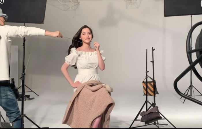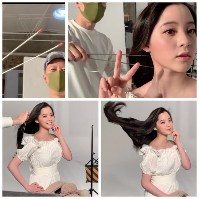 除了用鼓风机和模特自己甩头,还有哪些方法能让头发飘起来?欧阳娜娜一上来就展示了洗发水广告中经常使用的“神器”:发型师通过一个长夹子帮助她的长发摆脱了地心引力。不过,发型师撩头发、欧阳娜娜做动作表情、摄影师摁下快门,这一系列环节之间的配合并非易事。摄影师一边说好看,一边要求再来一次,“一二三走”循环反复很多次。右边拍完,再拍左边。欧阳娜娜总结称,“总而言之,这就是一次不失礼貌的微笑……”