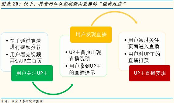 抖音、快手等短视频应用的持续增长,带来了“溢出效应”:许多短视频网红转战秀场直播,顺便带去了大批粉丝,这就是2018年上半年陌陌、YY等直播平台业绩表现不错的重要原因。抖音、快手也有直播功能,快手早在2016年就形成了UP主直播变现的闭环。但是,过度发展直播会破坏UGC社区的氛围、改变内容调性,所以短视频平台普遍对直播业务采取谨慎的态度。结果就是,抖音播下的种子在陌陌、YY开花结果,甚至进一步溢出到腾讯音乐平台,对整个网红生态系统产生了催熟作用。