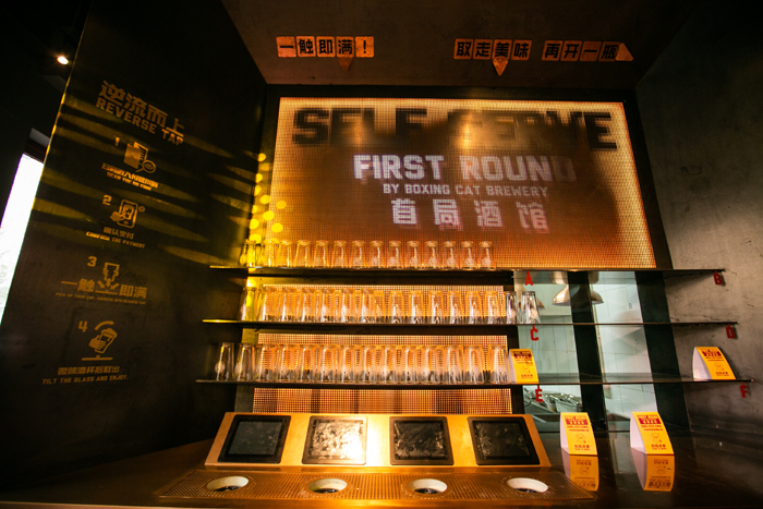 今年1月,定西路上的“开巴”在空关大半年后,以“拳击猫首局酒馆”的名义重新装修开放,供应10款酒,配置新式的自助打酒器,有服务员六七人,运营成本相当于“拳击猫”思南路店的三四成。