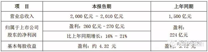 公司预计2018年全年实现营业收入2000-2010亿元,同比增长超过33%;实现归母净利润260-270亿元,同比增长16%-21%。