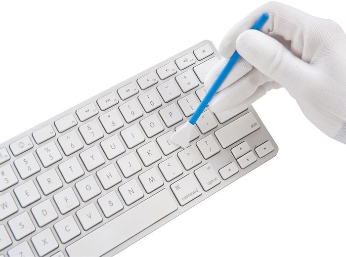 电脑键盘使用一段时间会落灰尘,可以将键盘翻过来,轻轻拍打,把键盘帽上的灰尘倒出,或者用软毛刷轻扫键盘刷出灰尘。