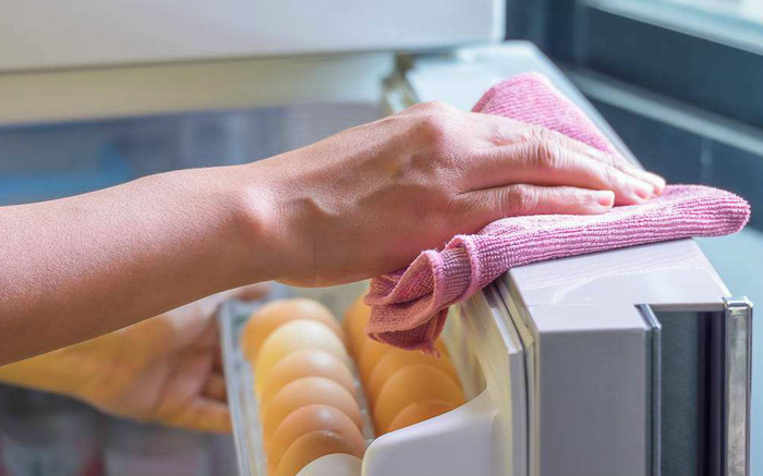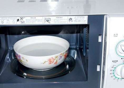 微波炉在加热食物时容易迸溅污渍,不易擦拭干净,可以用一勺白醋放入盛有水的碗中,在微波炉中加热五分钟,然后再用抹布或厨房纸巾擦拭微波炉内壁,就很容易去除污渍了。