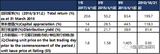 向投资者分配利润由成立之初2006年的24.6百万新元,增加到2017年的152.2百万新元,年复合增长率达到18%。截至到2018年9月底,三个季度分配利润累计达到108.3百万新元,投资者累计回报率达到300%。