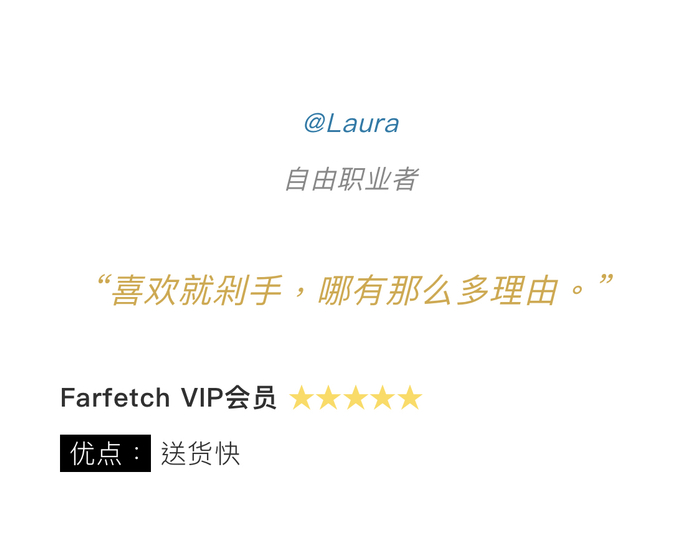 我最满意的还是Farfetch的物流,不算周末3-4天就到了,真的超级快。Net-a-porter国内平台上东西很少,相比其他海淘网站,我觉得Farfetch是最好的。