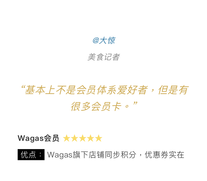 Wagas的会员对我来说是一个沧海遗珠,就是没想到注册一个它的会员还真的有点用……而且中国大陆范围内所有参与活动的Wagas、BAKER & SPICE和LOKAL门店可以同步积分和使用。