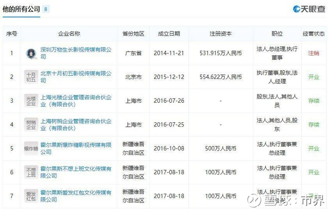 不仅是霍尔果斯爆炸糖,马凌共拥有8家公司,在其中7家担任法定代表人,行业范围包括商业服务业、广播、电视、电影和影视录音制作业等,咪蒙立体的商业版图已渐露雏形。