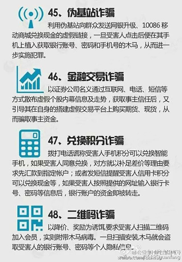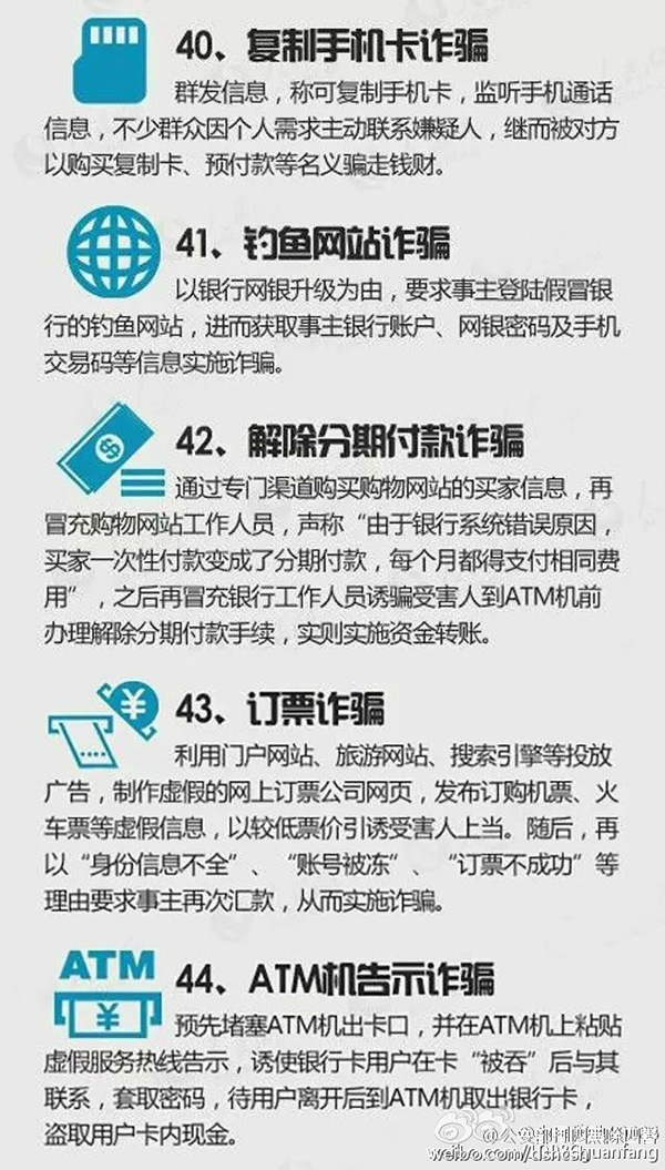 澎湃新闻注意到,早在2016年1月,为有效开展预防打击工作,公安部刑侦局官方微信曾公开48种常见电信诈骗犯罪案件,其中,使用电话类的占63.3%,使用短信占14.8%,使用网络的占19.6%。