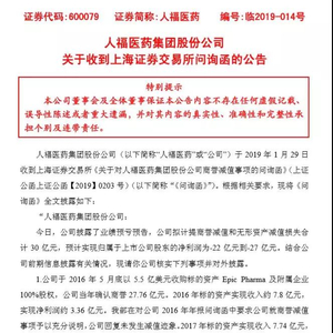 30亿商誉地雷爆发,人福医药收上交所问询函,海外投资需谨慎
