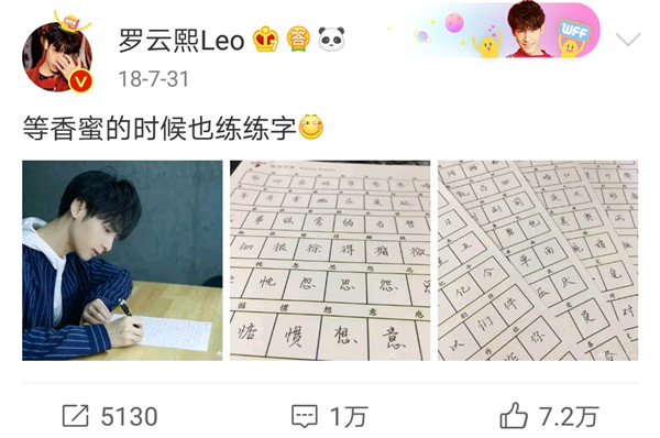 经此一轮,粉丝在微博成立了“璇玑宫”,经常写字画画@爱豆本人,在粉圈里也算是偶像带动粉丝学才艺的典型了。