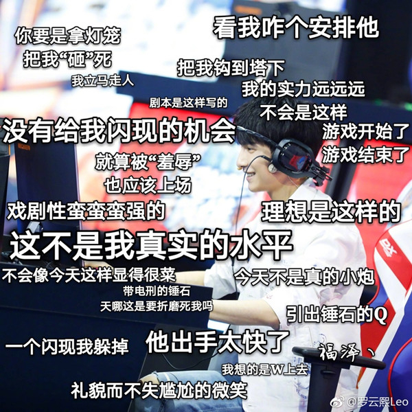 罗云熙:是一种专注度吧。可以把心里的压力和负担通过游戏分散,负能量转移掉,注意力转移到游戏上,通过玩一局游戏,我可能就忘了那边的东西,明天又重新开始。