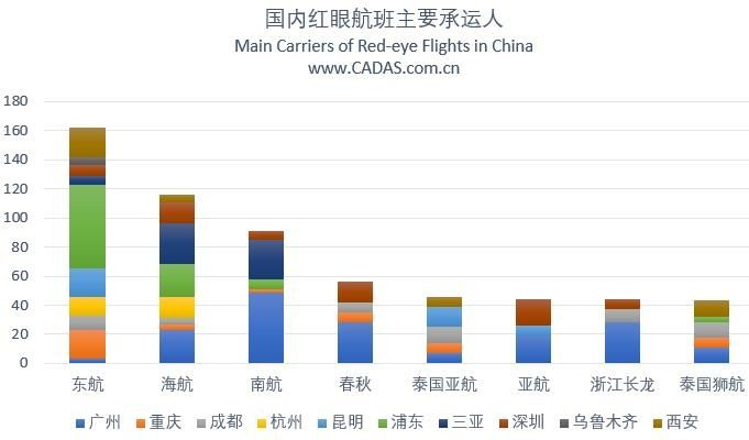 1月28日至2月3日间共有62家航司运营国内红眼航班,其中36家航司周离港频率低于10架次,8家航司周离港频率超过40架次。国内红眼航班承运人中仅有东航在全部10个试点机场均设有航班。8家国内主要红眼航班航司中有4家低成本航司,其中包括3家境外低成本航司。