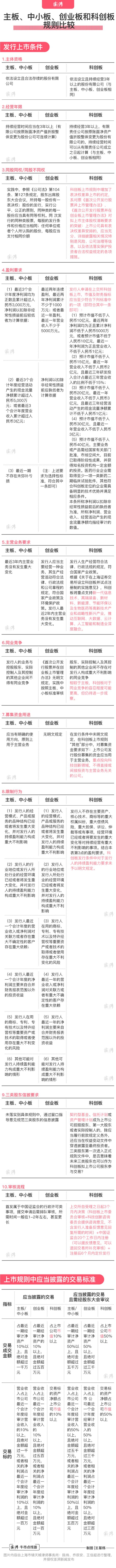 上海市锦天城律师事务所陈炜、乔辰安、王佳超团队,将科创板发行上市条件与主板、中小板及创业板在发行上市条件和信息披露要求中有关应披露交易标准的规则进行了比对。